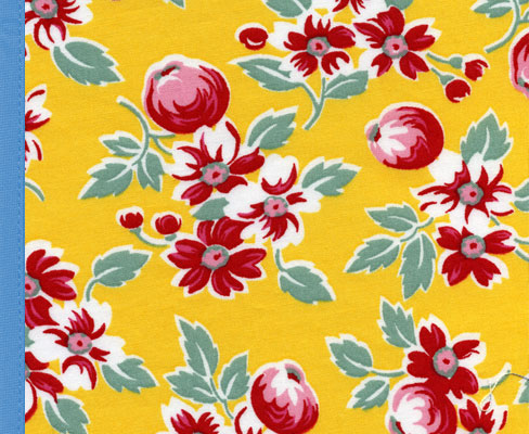 Plump retro style fruit on a yellow background. The only thing cheerier than this print, is this print with Morning Glory Blue edging.