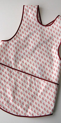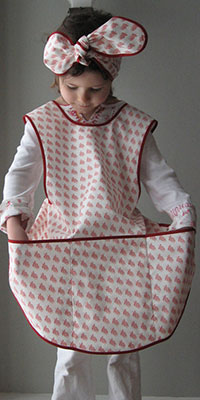 Charlie’s no fuss, no muss style is perfect for the budding chef or artist that just can’t sit still long enough to deal with buttons or ties. A built-in front pocket divided into three provides a place for wooden spoons, marbles or hands. And whether it’s from flour and eggs or glitter and glue Charlie will protect play clothes.