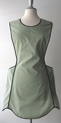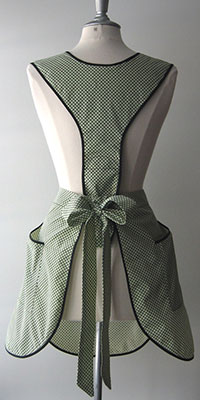 Eunice has a clever innovation we spied on a beautiful vintage flea market find. A single piece runs down the back to the waist. Simply thread the apron strings through one of three channels sewn into the back piece and tie a bow. The result? A flattering apron with three height adjustments, that fits an endless amount of “widths”.