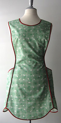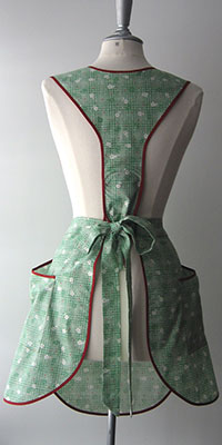 Eunice has a clever innovation we spied on a beautiful vintage flea market find. A single piece runs down the back to the waist. Simply thread the apron strings through one of three channels sewn into the back piece and tie a bow. The result? A flattering apron with three height adjustments, that fits an endless amount of “widths”.